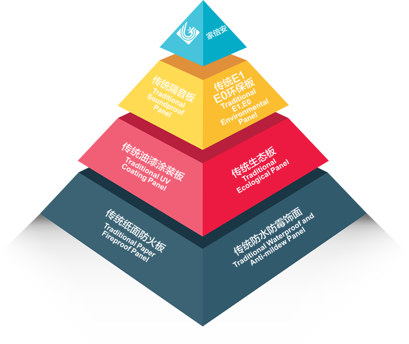 - “家倍安”使用高阻隔金屬鋁箔和高滲、超耐磨納米材料,經(jīng)過高溫高壓獨(dú)特的工藝方法處理,飾面木質(zhì)纖維結(jié)構(gòu)更加縝密,隔音、降噪,導(dǎo)熱系數(shù)低,防火等級(jí)高,達(dá)到國家防火材料防火標(biāo)準(zhǔn)A2級(jí)。